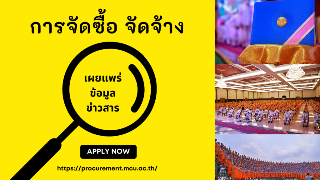 กองคลังและทรัพย์สิน มหาวิทยาลัยมหาจุฬาลงกรณราชวิทยาลัย ได้จัดทำเวบไซต์ ระบบเผยแพร่ข้อมูลข่าวสารการจัดชื้อจัดจ้าง คลิก…. https://procurement.mcu.ac.th/